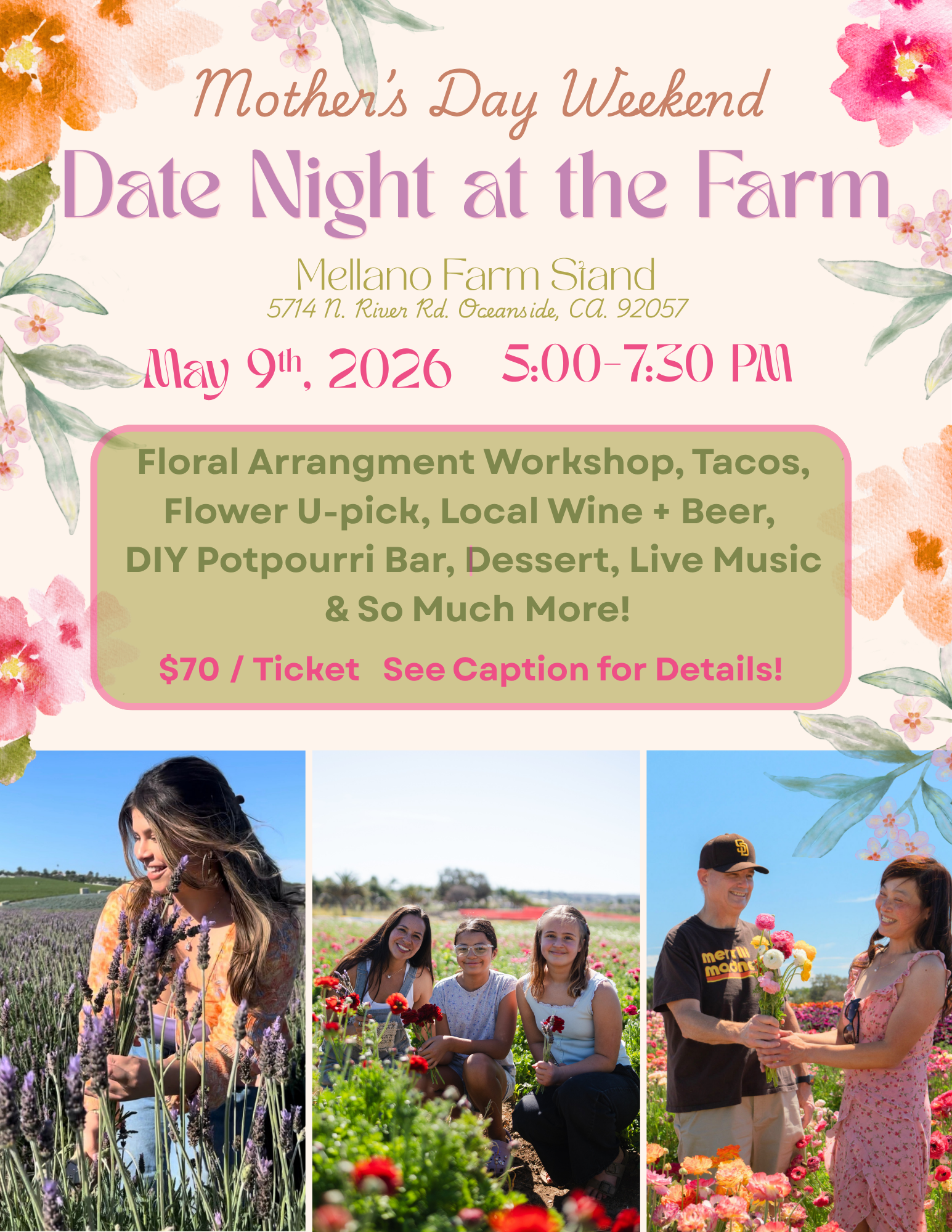 Mellano Farm Stand is open Thursday through Sunday, from 10:30 AM to 5:00 PM, unless otherwise noted for special closures.
